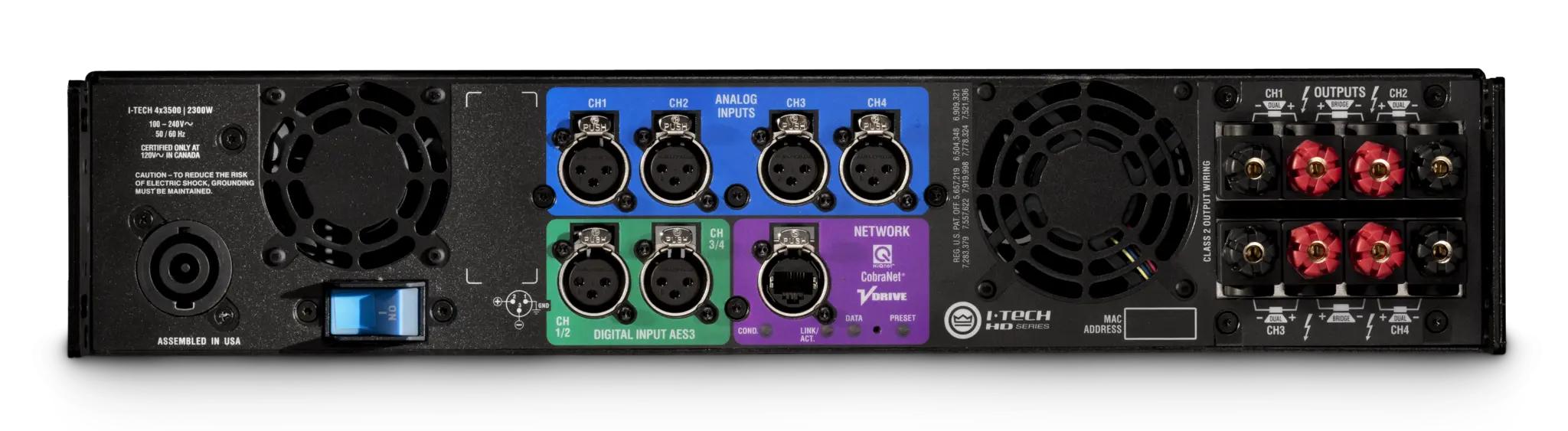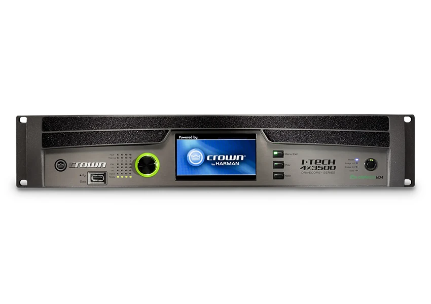 O amplificador I-Tech 4x3500HD é o primeiro amplificador de som para turnês de alta potência do mercado, com quatro entradas: analógica, AES3 e CobraNet™, totalmente roteável para qualquer uma das quatro saídas. Cada canal conta com um conjunto completo de processamento OMNIDRIVEHD™, incluindo o aclamado LevelMAX™ Limiter Suite, e suporte para filtros FIR de fase linear, como os utilizados nas mais recentes afinações dos alto-falantes JBL V5. Combine isso com a tecnologia patenteada Classe I da Crown, que oferece potência de saída incomparável em todos os quatro canais, e fica fácil entender por que o I-Tech 4x3500HD é o principal amplificador de som para turnês da Crown.
