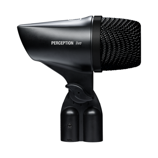 O microfone dinâmico para graves de alto desempenho Perception P2 oferece graves profundos e energéticos para uso em bumbos, trombones e amplificadores de baixo. Seu padrão polar cardioide reduz o feedback e a diafonia provenientes de outros instrumentos atrás do microfone. O Perception P2 vem em uma estrutura robusta, toda em metal, para suportar as condições mais adversas da estrada. Um adaptador de suporte integrado torna o microfone muito fácil de usar. O pacote também inclui um estojo de transporte para transporte e armazenamento seguros.