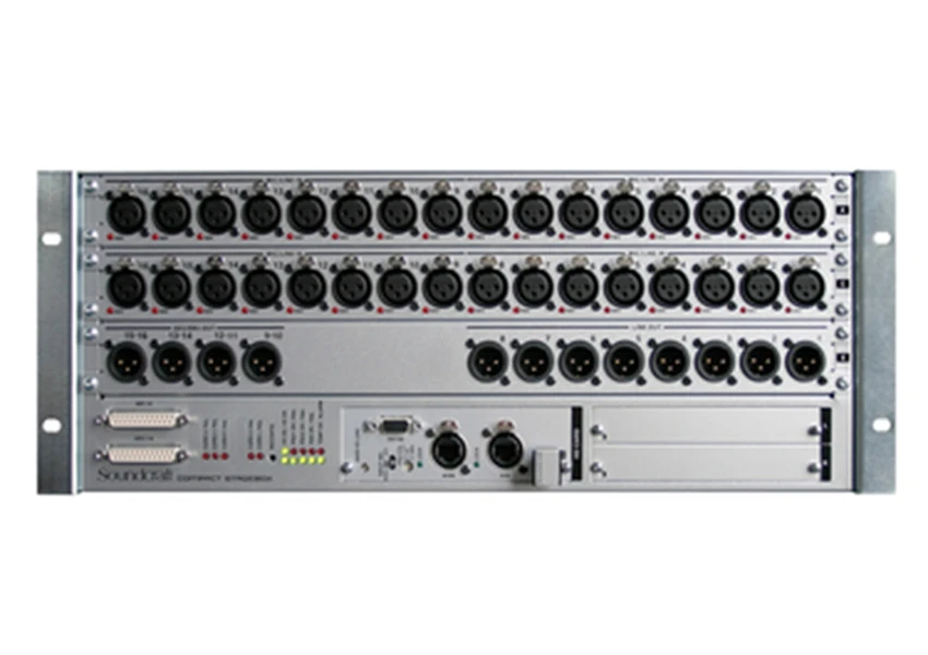 O Soundcraft Compact Stagebox oferece alta densidade de conexões de E/S em apenas 4 unidades de rack. A unidade modular é totalmente configurável, mas é oferecida com uma configuração padrão de 32 entradas de microfone/linha, 8 saídas de linha, 8 canais de saídas AES/EBU e 2 slots de expansão para placas de E/S padrão Studer D21m. O D21m é a arquitetura de E/S para sistemas de mixagem digital Studer e Soundcraft e permite a conexão com os formatos digitais mais populares, incluindo CobraNet®, AVIOM A-Net®16, Ethersound, ADAT e RockNet. Uma interface de gravação MADI também pode ser instalada nos slots de expansão.