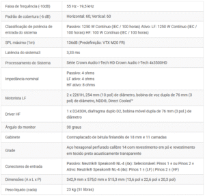 • Modos de operação de canal único (passivo) e canal duplo (bi-amplificador) para máxima flexibilidade na configuração e implantação do sistema