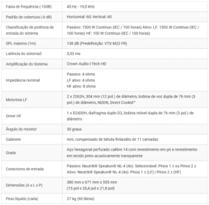 - Modos de operação de canal único (passivo) e canal duplo (bi-amplificador) para máxima flexibilidade na configuração e implantação do sistema